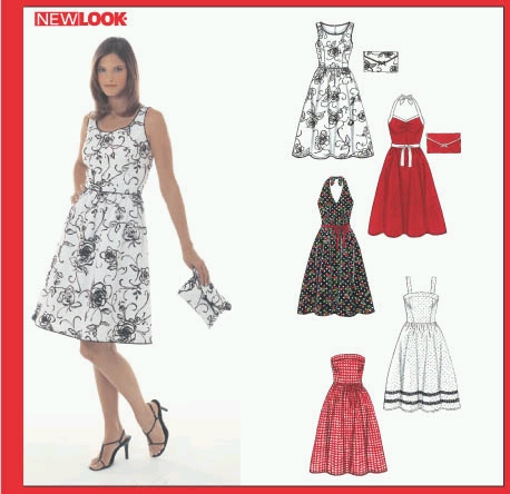 but alas that did not happen because it was too hot to move. Too hot to do anything other than sit still, read, and perhaps wash one’s face with cold water every hour or so. At some point I had to escape, so I took my sleeve to the G Street sale, and bought some more fabric, including some cotton to make a cute sundress that will coordinate with the Retro Jac. This decision was inspired by my mom, who when flipping through the pattern book, pointed out the dress modeled with pattern and said, “that would look good on you, you should make it!” I do get a small thrill from copying ready-to-wear (yes, I am a sewing geek), and I won’t even have to draft this one, because I found a similar pattern, New Look 6457,