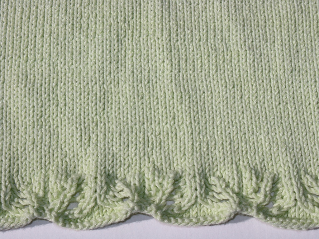 The yarn, Sublime Soya Cotton dk, is wonderfully soft and lofty. It’s on the thinner side for a dk yarn and works great at sportweight gauge (6 stitches/inch). The yarn is about 8 plies with a moderate twist; I’ve found it to be just slightly splitty when knitting by touch alone. My only gripe is that 2 of the 3 balls I’ve worked with so far had knots. I find this annoying when the yarn can’t be spit-spliced, and also when it isn’t exactly cheap. By the way, the color is off in these pics. It’s actually much brighter, and more yellow.