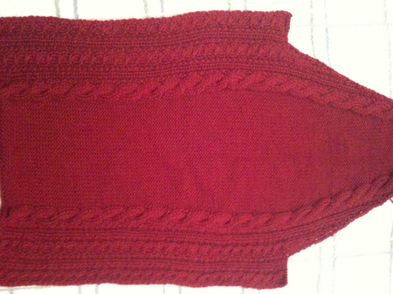 Here’s my new project from the Tahki Modern Romance booklet. There are several lovely patterns in this publication and I’m happy that I finally got to cast one on. It’s a fairly easy pattern, reverse stockinette with some cabling and texture for interest. The pattern has some errata- according to the picture, the small (4 st) cable should cross once every 4 rows, not once per 8 rows like the big cable. So, it’s an 8 row repeat, I’m crossing the small cable on rows 1 & 5, and the large cable on row 5. I started with one purl row on the WS for nice foundation row. After finishing the back piece (pictured below), I casted on a sleeve and planned to make it slightly shorter (19″ vs 20″) to avoid hands being swallowed. I’ll shorten the section below the pleat. Unfortunately I experienced a setback when the sleeve wip, which was entire ball of yarn knitted up, disappeared on the DC metro (subway). I was quite upset as with that gone, I don’t have enough yarn to finish. Thankfully, a kind knitter on Ravelry came to the rescue with a few skeins from her stash. I am so grateful!