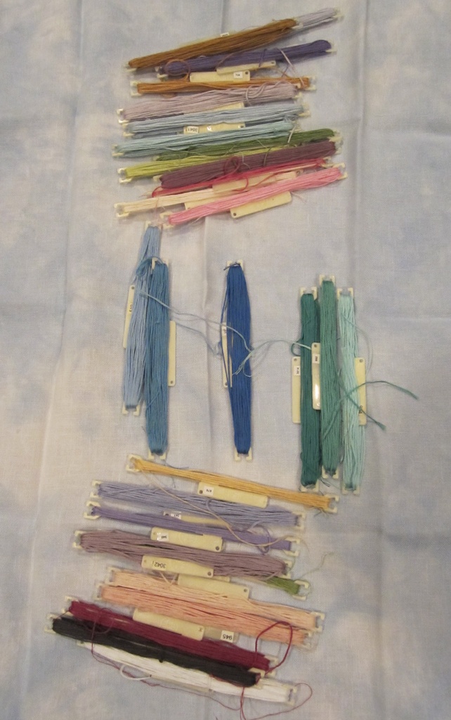 July has been a very busy month for me, with some home improvement projects. Also, a good chunk of my free time went towards framing some of my older cross stitch HD’s (more on that soon). However, I did start Joan Elliott’s Summer Fairy and made good progress. I hope to finish her next month and get started on my final seasonal fairy, Autumn. My original schedule was to do Autumn in the Oct-Dec timeframe, but I am concerned that if I wait that long, I won’t be able to finish the series this year. And I really do want to finish it. So, without further adieu, here is my Summer Fairy floss toss on Summer Breeze belfast linen by Silkweaver (old).