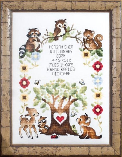 These pics reveal glimpses of Ollie’s nursery. Eventually, I will post a full reveal, but it may be a while until I finish all the projects. I’ll set a loose deadline- say when he is 6 months old (mid August). For the next full moon, which is not so far away, I would like to work on additional nursery decor projects, like the baby quilt I have pieced and sandwiched. I would also like to make a start on Ollie’s birth sampler. It’s a fairly small patten by Stoney Creek but involves many colors .