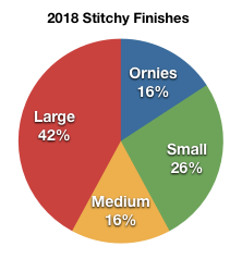 2018 was a good year, I started with 8 wips and ended with 4 (or 5, counting Mill Hill Village). I had 15 starts & 19 finishes. Most of the starts were small-ish. I think I’ve finally disembarked the serial starting crazy train. (No offense intended, if that’s your thing, but personally, the proliferation of wips with minimal progress makes me batty). Going forward, the challenge will be to contain the wip count at a comfortable number. My sweet spot is 8 or fewer WIPs, but ornaments may be an exception to the rule.