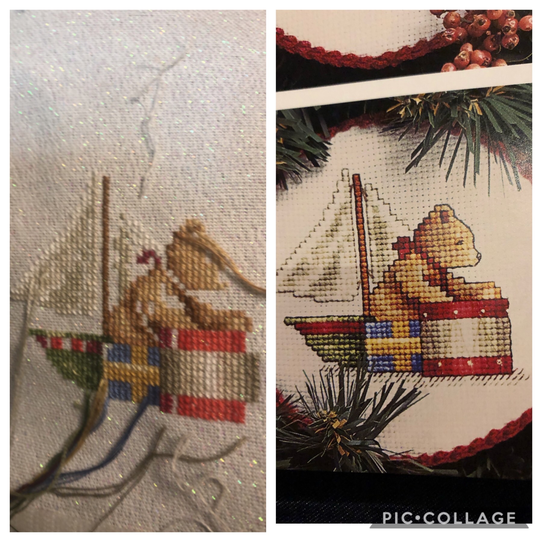 Goal #2 Toys Ornie by Better Homes & Garden, Cross Stitch Christmas, Needlework Treasures.  It’s almost done, just needs backstitching, personalization, and full finishing, of course.  I want to finish this is a circular flat ornie, as shown in the model.