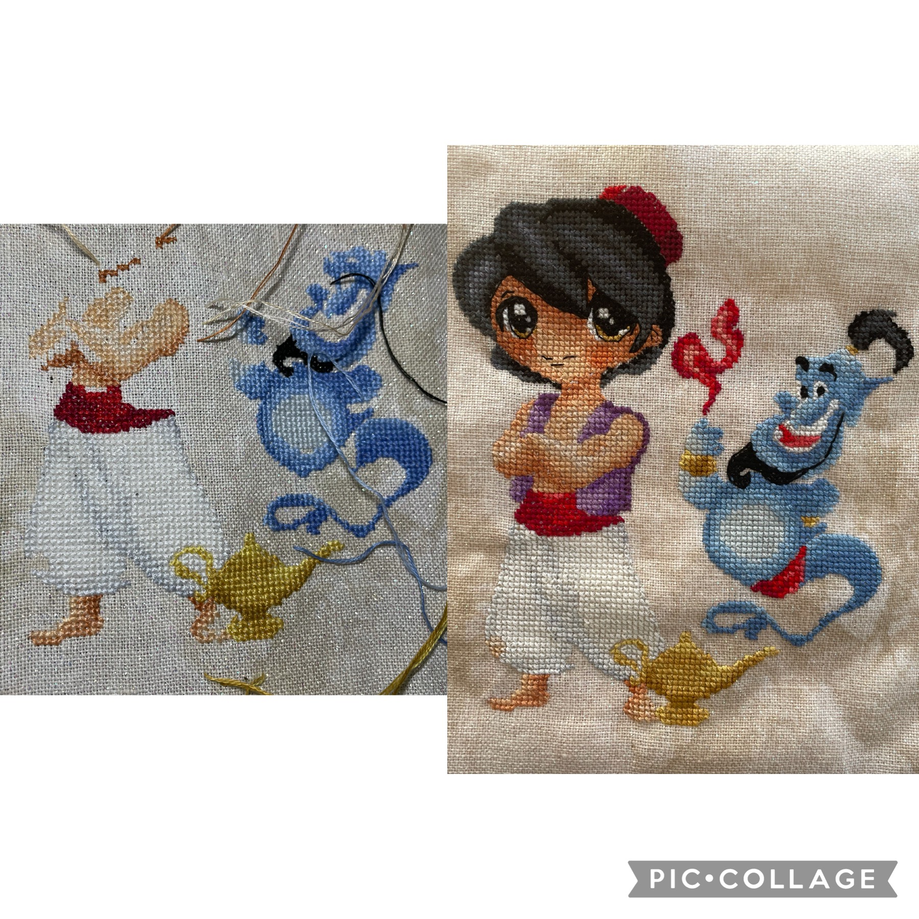 Aladdin was called for WIPGO. In 1.25 days, I met my goal to finish the cross stitching, and even started with the backstitch, with 1,787 stitches (backstitch counted for half). It’s coming along and will be coming out in early February for a focused finish, hopefully!