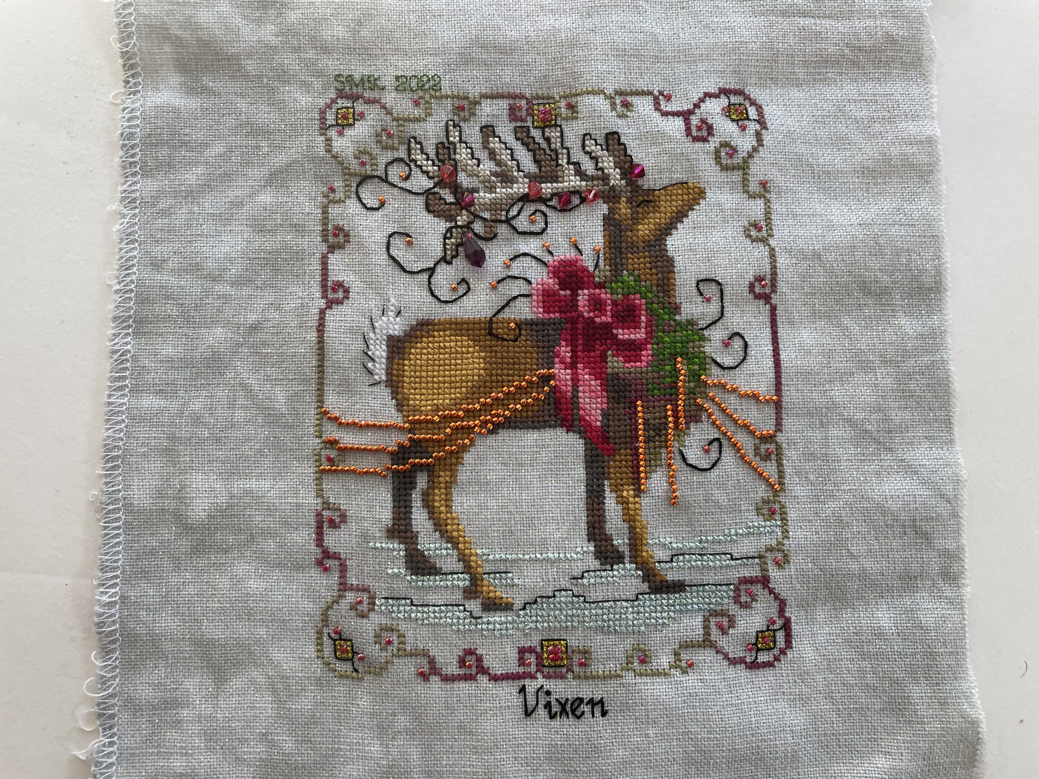 Vixen was a January finish goal, also my January focus with Semisane Stitchers. Over a few days, I did 2,883 stitches and finished it! More details forthcoming in a finish post, need to take some decent photos of Stargazer too.