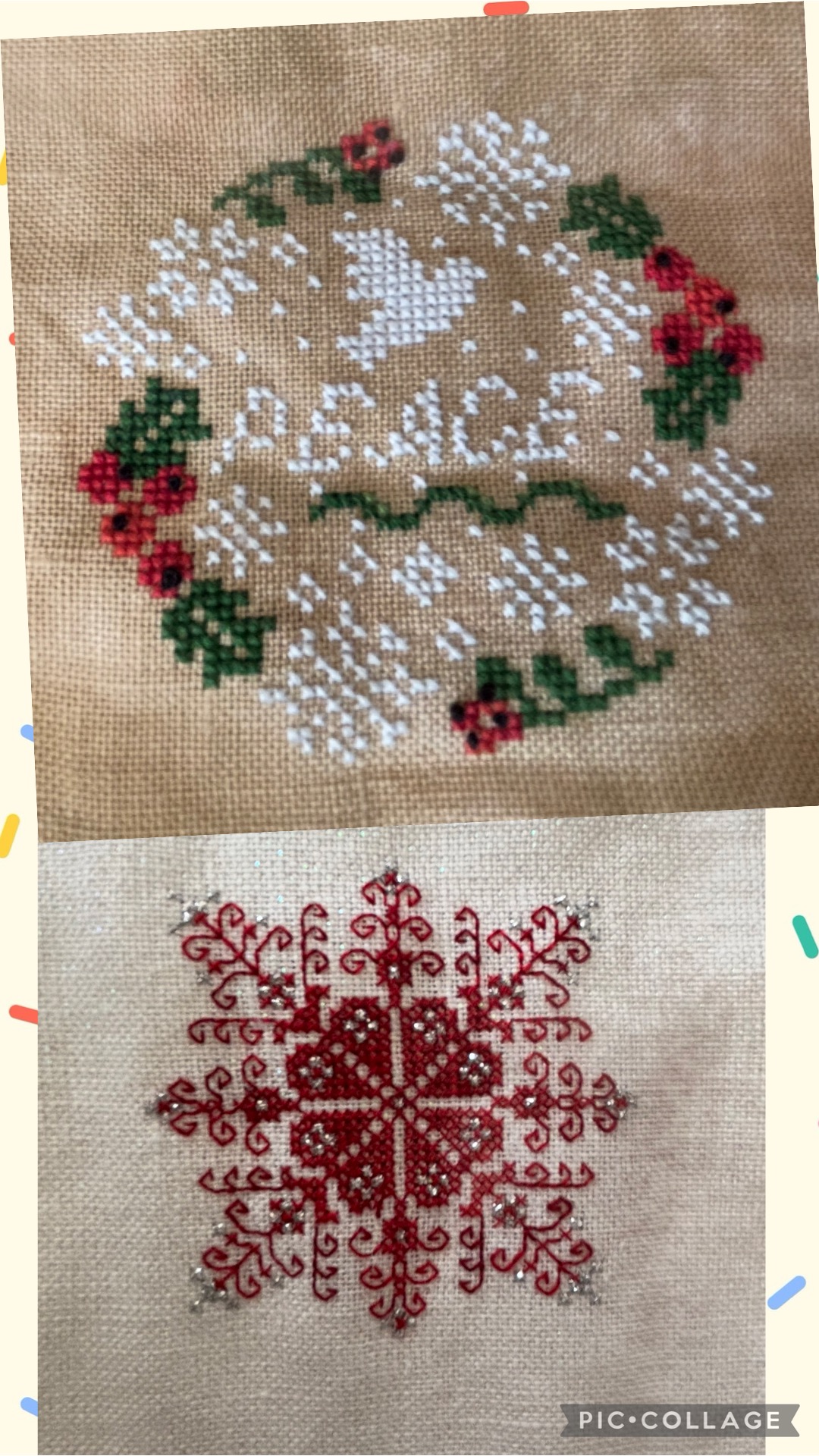 Finally, I finished a couple ornament wips, Peace on Earth by Punochka on Chocolate milk Belfast and Christmas Star by Giulia Manfredini on white opalescent Belfast. Together, the effort was about half a day with 200 and 25 stitches, respectively. I doctored Peace on Earth a little with French knots for the berry centers, feeling the it needed a little dimension. It’s lovely to start the year with a couple finishes, even if they are small.