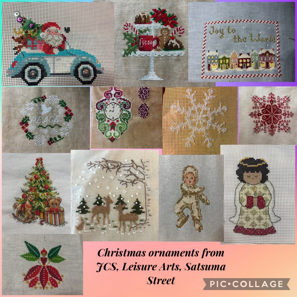 10. Ornaments! My initial goal was 12, including 3 wips. I upped that to 15 (3 wips and 12 start + finish). First, the Christmas ones: Santa Cruiser by Satsuma Street, Tis the Season by Tracy Richards, Joy to the World by Olena Khirk-Yalan, Peace on Earth by Punochka, Time for Christmas by Corina Ciocanu, Gilded Snowflake by Deb Bees,Christmas Star by Giulia Manfredini , Christmas Morning by Mr. Stitch & Mrs. Needle , Winter Woodland by Patricia Bage, Snow Baby Skater by Leisure Arts, Lighting the Way by Elizabeth Spurlock, Poinsettia Fairy by Kathleen Berlew