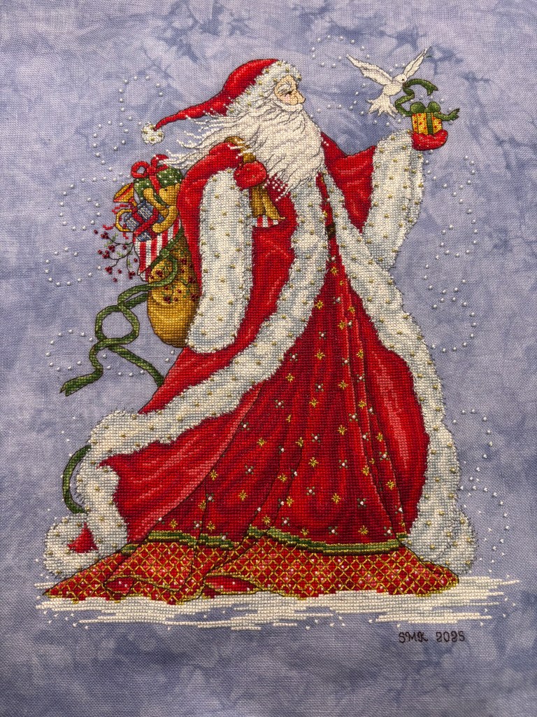 2. Father Christmas also by Joan Elliot was finished June 2, after 20 days love and 13,830 stitches.
