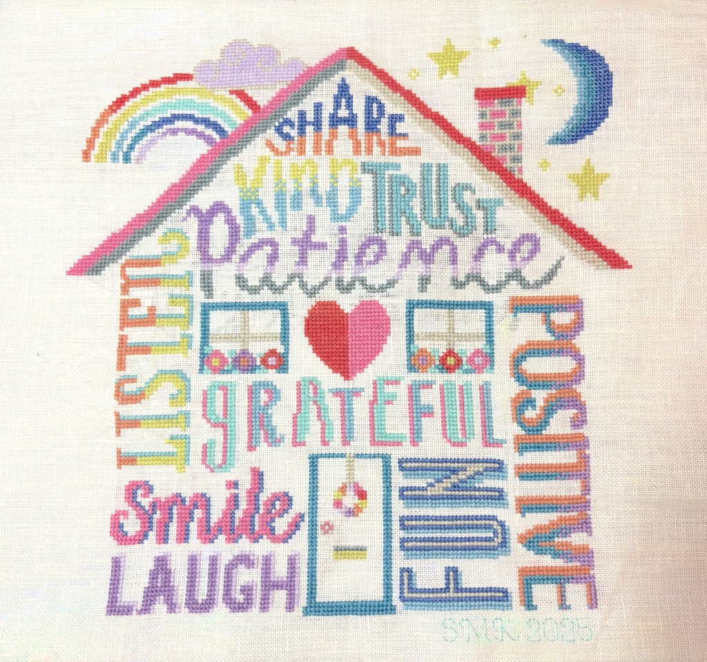Positivity Rules (11 days, 8,305 stitches) by Caterpillar Cross Stitch, was started in February and finished in July. It’s not my usual style, but it was a very fun project, and I may give it away as teacher gift.