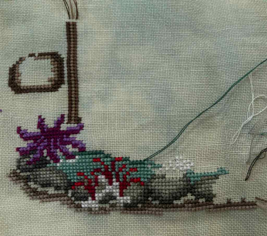 After a few days of consideration, I decided to start the Deadly Aquarium SAL by Lola Crow for my Flora/ Fauna rotation slot. My hubby likes it, reminding him of our lunch at Sea World’s Shark’s Underwater Grill in Orlando. It’s big enough, so I’m using it for the Semisane Calendar SAL, as well. I gave it a 1/2 day and 1,100 st, quite a bit more than planned but I was really enjoying it, and I adore this fabric- Water Spirit Belfast by Seraphim. This will be a 2,000 st goal, monthly, but I gave myself a little grace since it was a late start on January 29th.