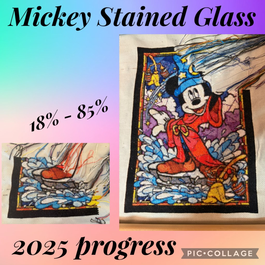 January Question of the month: tell us about the oldest WIP in stash: Okay, that would be Mickey Stained Glass by Neni Designs (etsy), started January 24, 2024, stitched on 18 count grey aida. It was a confetti-tastic nightmare at first, but I managed to tame it with the help of Markup RXP. I made some really cracking progress in 2025, 20,616 stitches. Less is more with this one, so I aim for 1,500 st/ month, usually. I’m looking forward to finishing it this year!