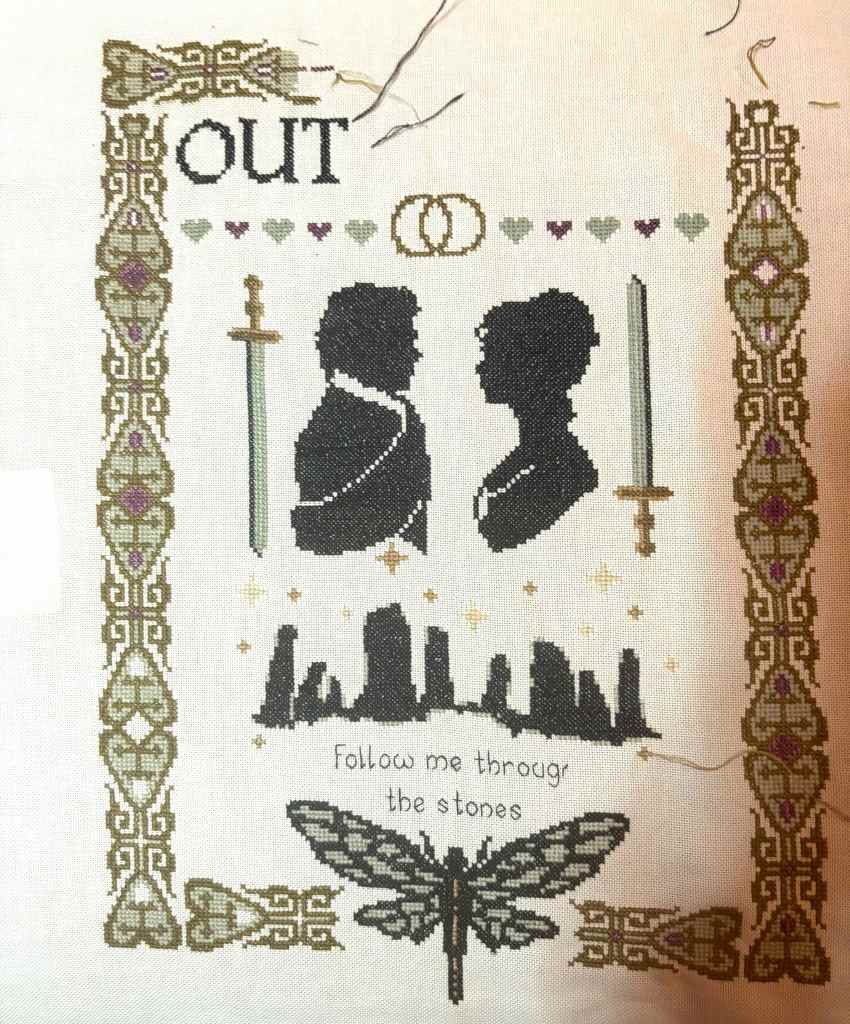 Outlander had 2 days and 2,000 stitches done. I worked on the heart band, the wedding rings, the word, and continued on the border. It’s getting close, I may push a little more than 2,000 st and get a finish in April, if time allows.